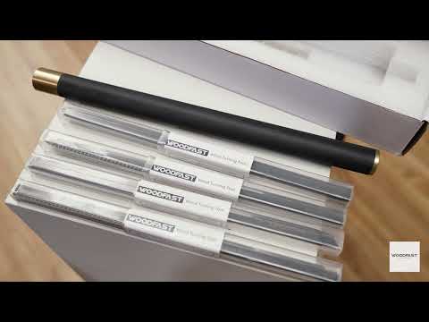 - Simply unscrew the knurled chuck collet to insert any of the four supplied shafts with carbide cutters, tighten the chuck collar, and you are ready to turn